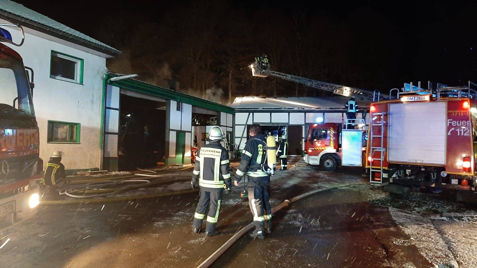 Eine Halle mit diversen Gerätschaften ist komplett niedergebrannt, es gibt keine verletzten Menschen oder Tiere. Die angrenzenden Gebäude konnten vor dem Feuer geschützt, und gehalten werden. Es wurde eine Löschwasserversorgung über 650m gelegt, dabei wurde ein Löschteich mit 50m3 und eine Löschwasser Zisterne mit 30m3 genutzt.